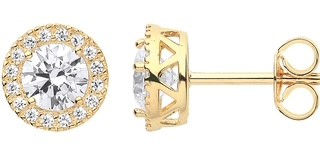 9ct Yellow Gold 8mm CZ Halo Stud Earrings